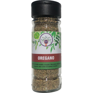 Dried Marjoram in 100ml Glass Spice bottle with black 19-hole shaker lid